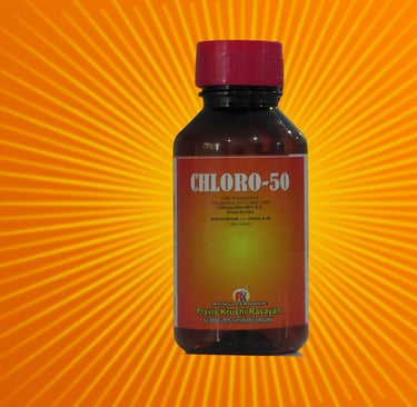 Boost your crop protection with CHLORO-50, a potent insecticide designed to manage and eliminate a wide range of pests effectively. CHLORO-50 is your reliable partner in maintaining a healthy and pest-free agricultural environment.