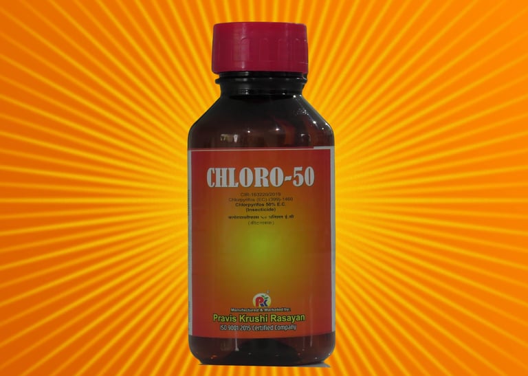 CHLORO-50 is formulated with Chlorpyrifos 50% E.C. (Emulsifiable Concentrate), an active ingredient known for its efficiency in controlling various insect pests.